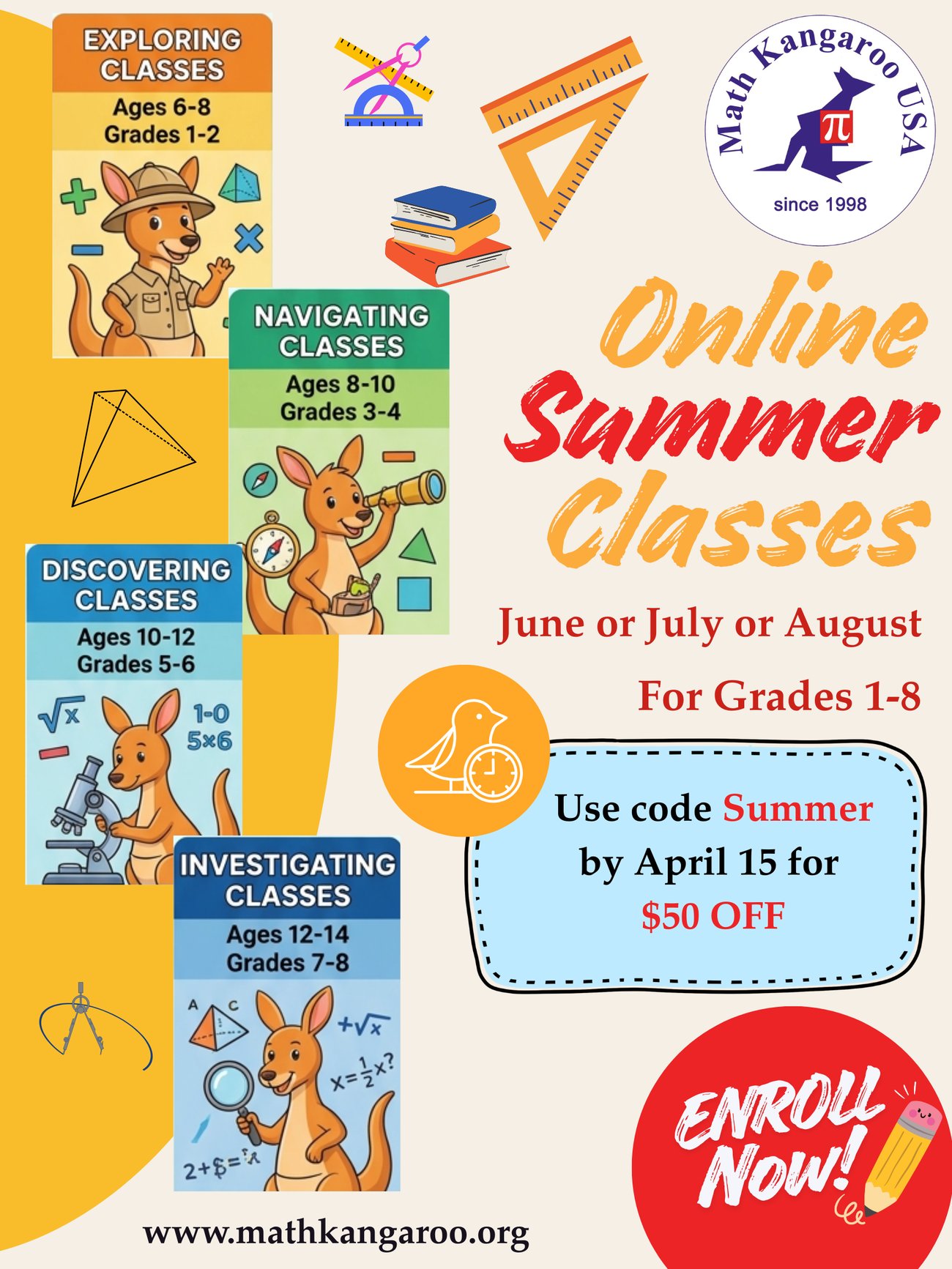Answer Key: The official answer key will be posted on the Math Kangaroo homepage on April 20.