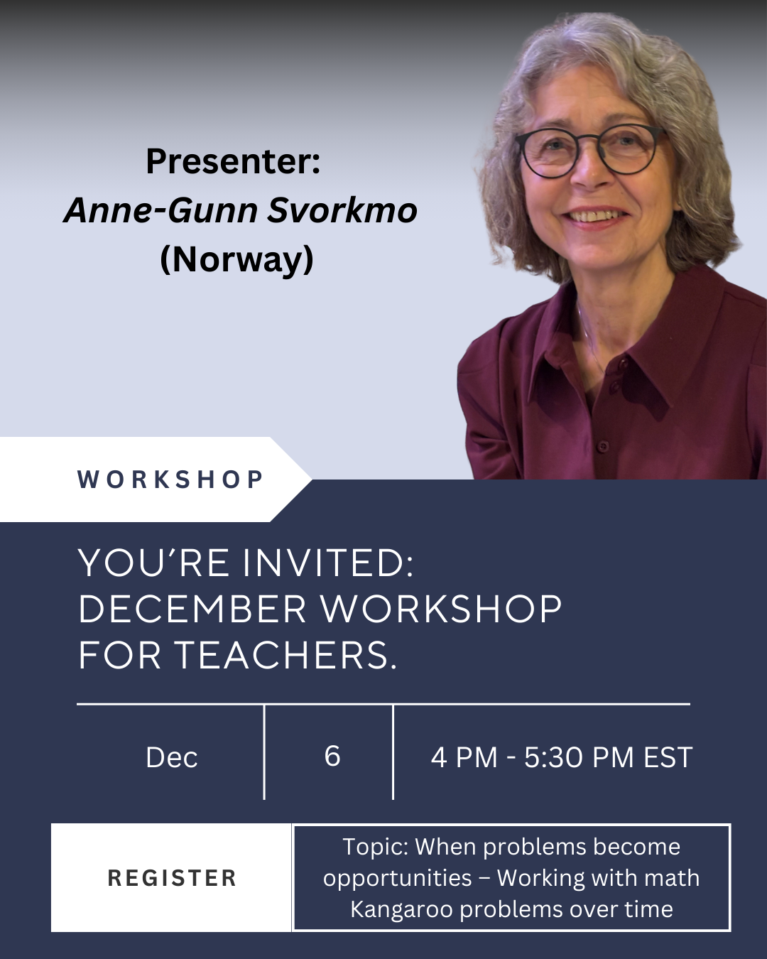 Presenter: Prof. Anne-Gunn Svorkmo (Math Kangaroo Norway)