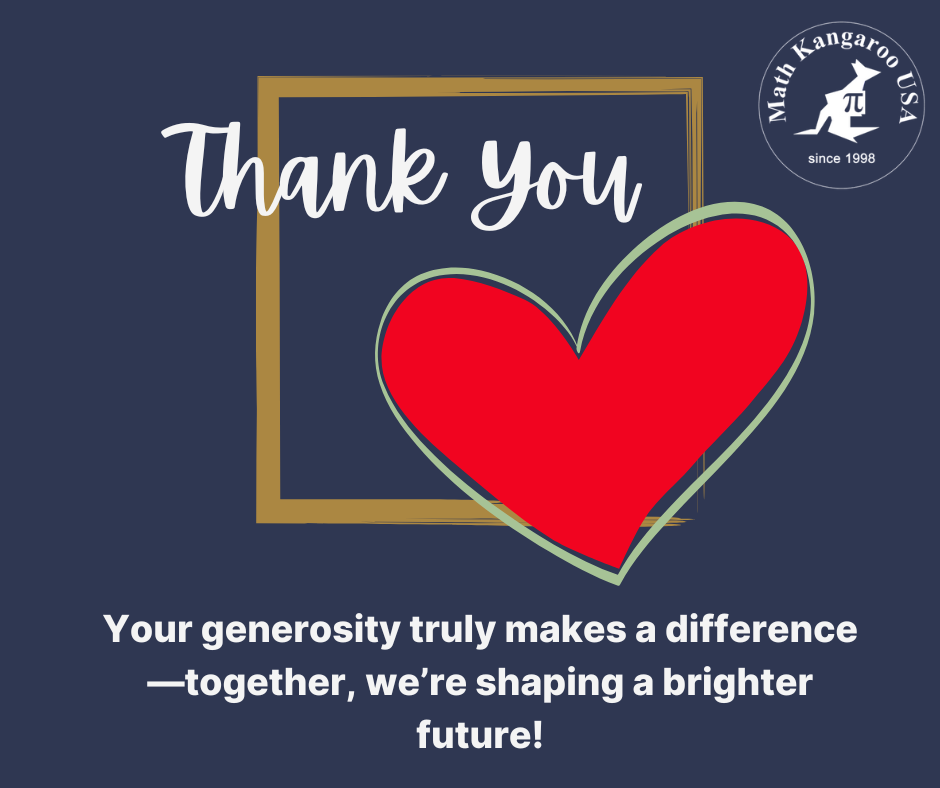 We would like to extend our deepest gratitude for your generous support towards the Math Kangaroo Giving Tuesday campaign. Your donations have made a significant impact in allowing us to continue the competition and reach out to more students, especially those in need.