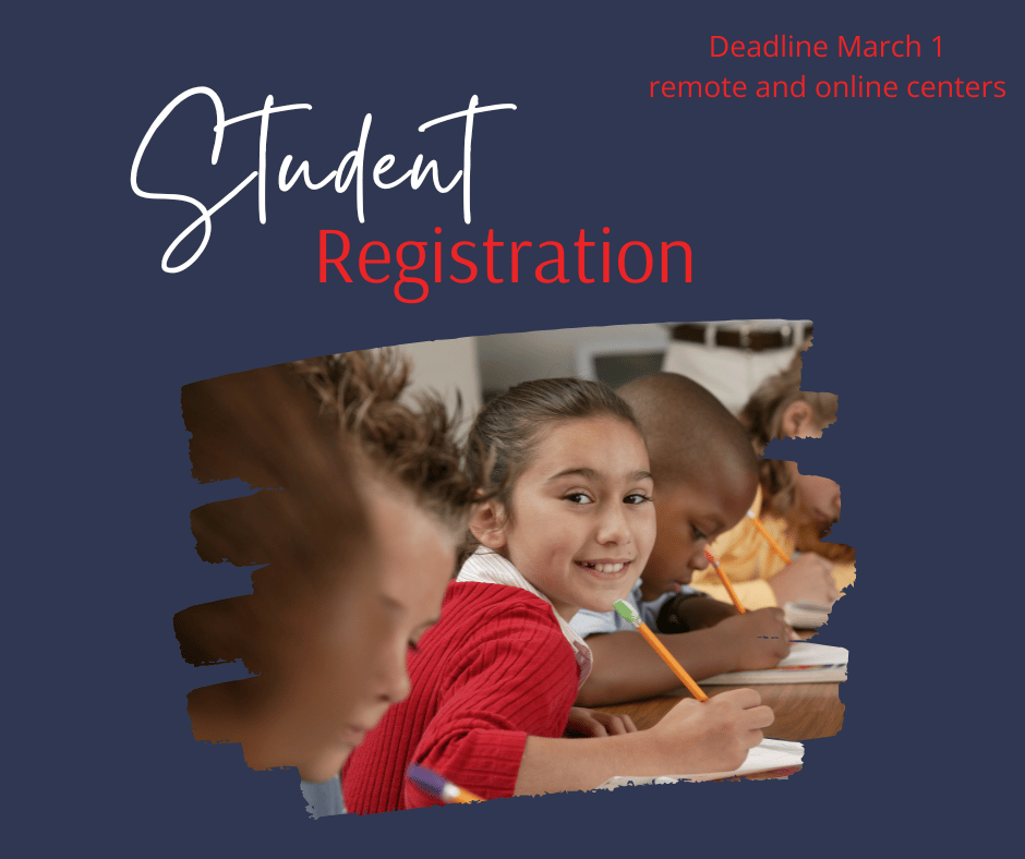 Registration remains open until March 1. Families may choose from remote online proctored state centers in selected states or a self-proctored virtual centers.